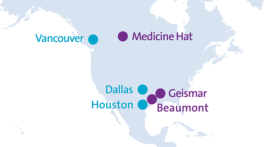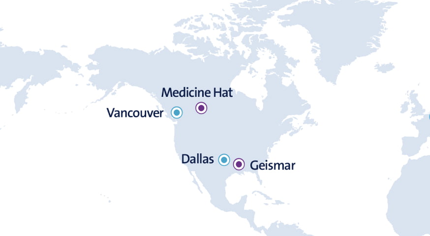 Map Locations Regional Office Manufacturing Asia Mainland China | 梅赛尼斯在中国 Hong Kong Japan Korea Singapore South America Chile | Español Trinidad and Tobago Oceania New Zealand Europe Belgium Netherlands – Amsterdam Netherlands – Delfzijl North America USA – Beaumont USA – Beaumont (Natgasoline) USA – Dallas USA – Geismar USA – Houston Canada – Medicine Hat Canada – Vancouver Middle East Egypt | العربية