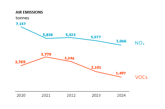 Good air quality is fundamental to human health and well-being. Air quality is measured by the concentration of pollutants in the air, including nitrogen oxides (NO×), sulphur oxides (SO×) and volatile organic compounds (VOCs) such as methanol vapours. We follow local regulations, and we aim to reduce emissions associated with our manufacturing operations and our Waterfront Shipping division that could impact local air quality and our neighbouring communities.