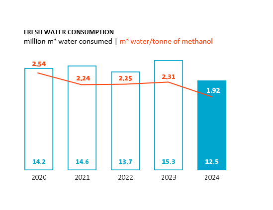 We depend on water for our operations and share this vital resource with the communities where we operate. Through our water stewardship program, we focus on minimizing our water use and protecting water quality in our areas of operation. While water is crucial to the production of methanol, we understand the importance of good water stewardship programs that focus on minimizing the use of water across our manufacturing facilities.