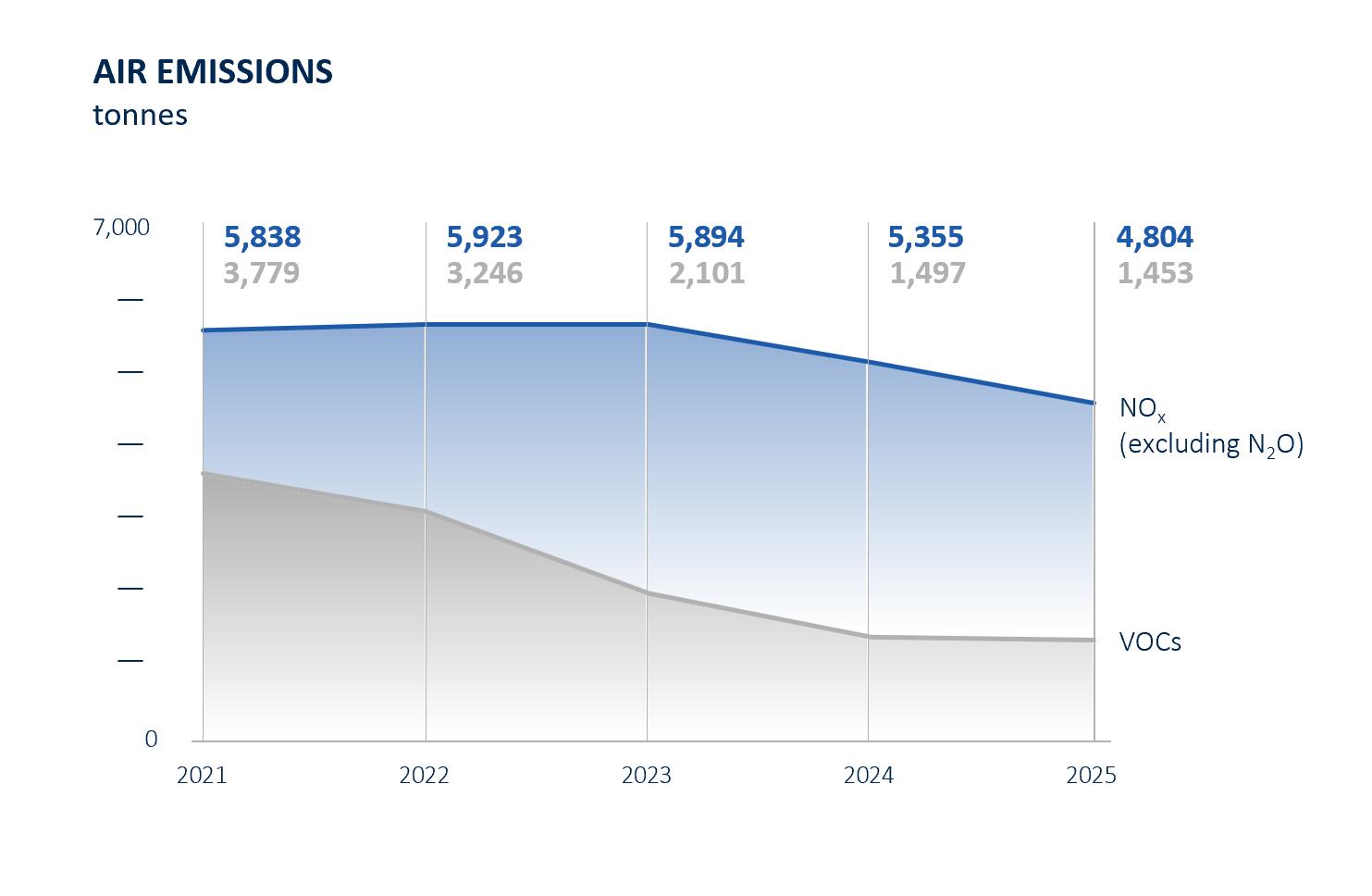 Air QualityWe manage emissions such as nitrogen oxides (NO×), sulphur oxides (SO×), and volatile organic compounds (VOCs) by complying with local regulations and investing in technologies and practices that reduce emissions from manufacturing and marine transportation. |