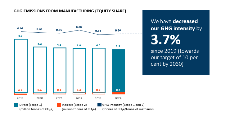 At Methanex, we are committed to continuing to operate and invest in our manufacturing assets to achieve greenhouse gas intensity reductions and position us for success in years to come. As part of our planning processes, we take time to understand how climate change and the energy transition may impact our business and develop action plans to mitigate risks or allow us to take advantage of opportunities.